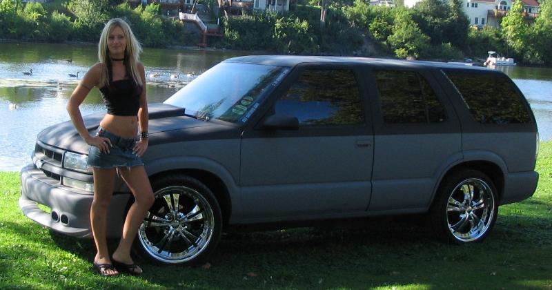 22yrs old female from northern indiana......been building my blazer for almost 3 years, it's a 95 4door 4x4, lowered 2/3(i know it's not low enough!) 2tone primer, rollin on 20in Panther Valeras............