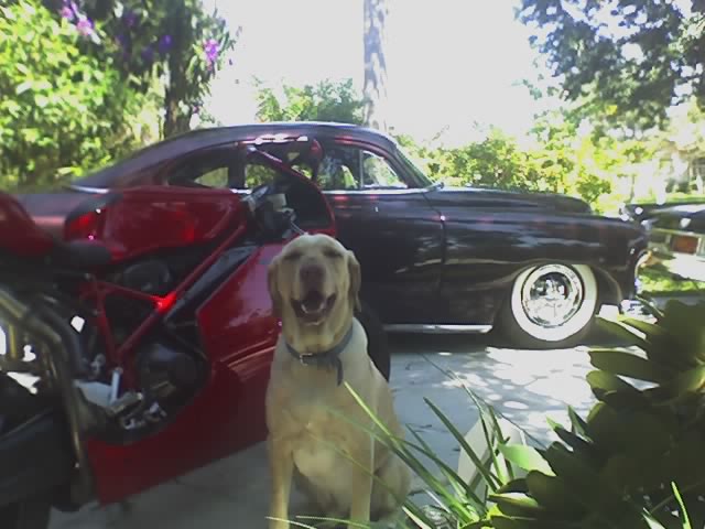 car/motorcycle nut and a big goofy yellow lab named "rudder" havin some fun together... meeting lots of nice people along the way~