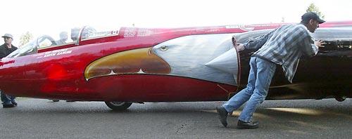 Well, I'm 30, wife 3 kids & I'm a painter. I don't do it for a living anymore, cause I never wanted to work on my own shit after doing it all day long (it's like the mailman taking a walk after work) so I only do it on the side. I'm a jet engine mechanic now & I moved to the Tacoma, Washington area (just south of Seattle) about 6 years ago. I'm hoping my son will carry on the tradition (he's 9 and he can alrealy weld pretty damn good) I'm also on a racing team as a jet engine mechanic on a jet car that is currently trying to break the current landspeed record of 763mph by going 800 mph. (see pics below). Check it out at www.landspeed.com