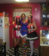 The pic below is me and a friend blake a few years ago at Indy Truck Bash and yes, thats a big soup ladel on my head....silly i know. Then there is a pic of my puppy dog Pickles, hehe. Isn't he just darlin'. Then the halloween pic is of me and my girls...beck, then me, then cort.
