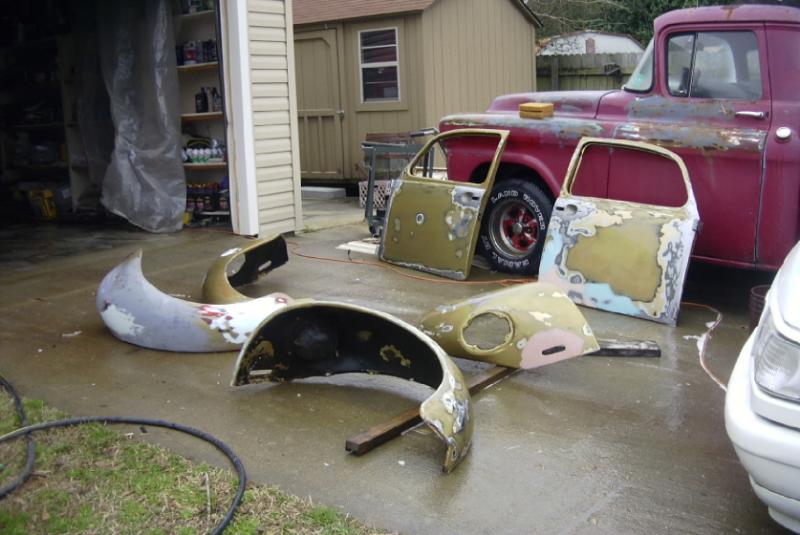 shaved turn signals on fenders, shaved vent windows, giant sliding rag top