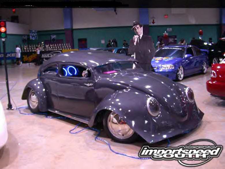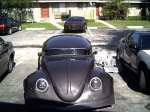6 inch chop, hydros, suicide doors, shaved lights, bug tilt nose on a superbeetle, (wasnt easy), relocated handles, cut 2 fenders in half and fiberglassed them the the tilt nose, also flared nose to a square with the ol chicken wire fiberglass trick, lots of body mods