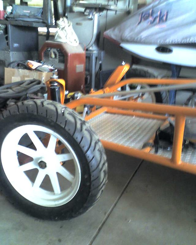 16x3 in front with motorcycle tires and 16x12 in rear with 31s