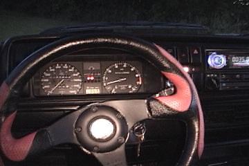 Racing steering wheel, eurosport short-shifter,pedals etc..,recaro's,random custom sub,amp,fire-extinguisher mount