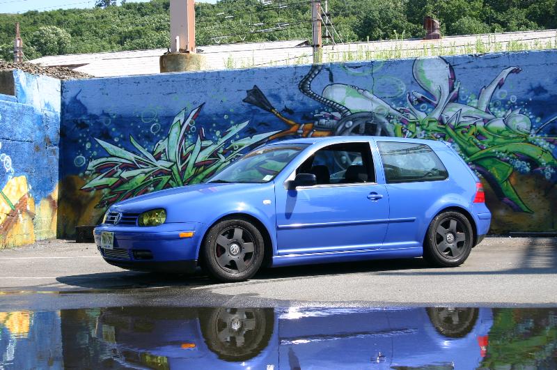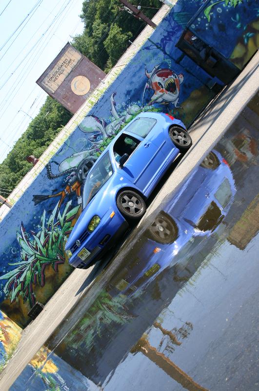 Jazzy blue, color matched "eye brows", custom shaved front bumper (removed molding, and marker lights, and made front bigger to fit front mount intercooler), custom shaved rear bumper, Carbon Fiber rear bumper plate, euro style headlights....