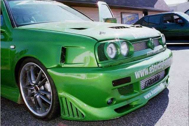 Green and silver metalflake, checker flag ghost painted covering both sides of the car, Custom made body kit ( thanx to jim hall ), Generation II sport mirrors, Light Green Tint all around the car, Bo System twin tipped exhaust, Neon light kit under car ( Green ), custom made carbon fiber spoiler, air slits in the fender walls, and in the hood, for that racing experience, green marker lights, and green fog lights, with strobes in the fog lights ( green )